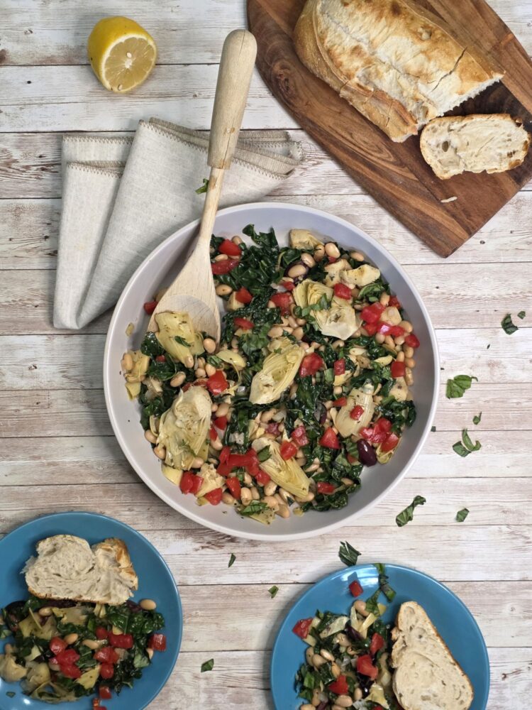 This Mediterranean Veggie Skillet is a rustic, nourishing one-pan meal that’s full of bold flavor and wholesome ingredients. Tender kale, juicy fresh tomatoes, creamy white beans, and briny bites of olives and artichoke hearts come together in a garlicky olive oil base, lightly seasoned with herbs like oregano, basil and […]