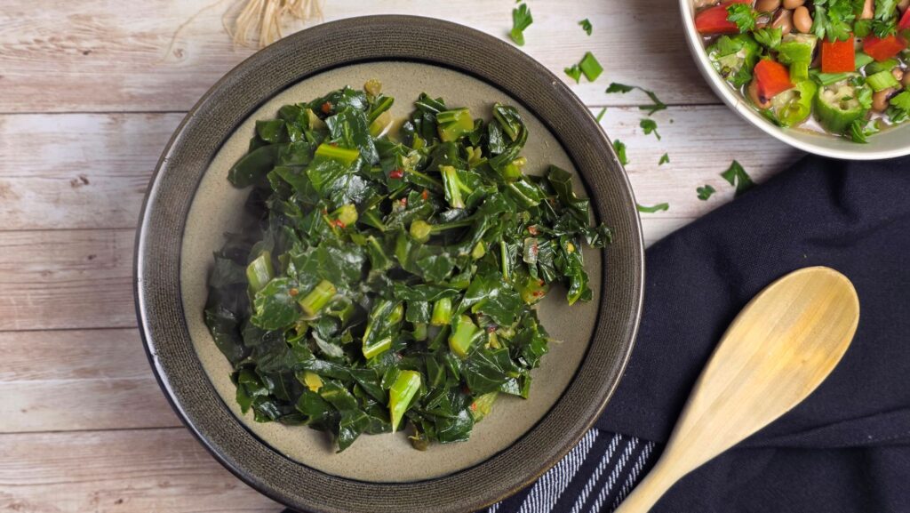 Olive oil: A touch of olive oil adds healthy monounsaturated fats that help your body absorb fat-soluble vitamins from the collards (especially vitamins A and K). It also gives the broth a silky richness and helps gently sauté the aromatics.